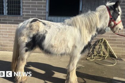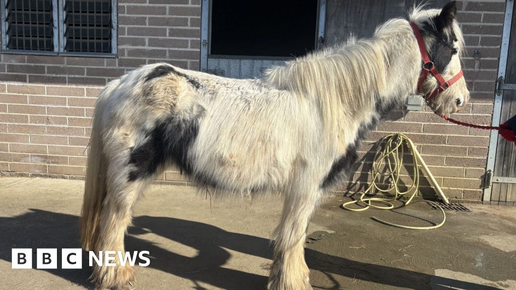 A charity says Valentine was found in a makeshift paddock with nothing to eat or drink. Source link...