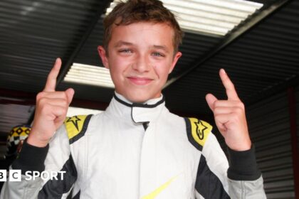 Norris says he’s “seen a lot of photos over the last 12 hours; a lot of little me”. One of them is of him doing donuts in a kart when he was still a small boy. What would he tell lit...