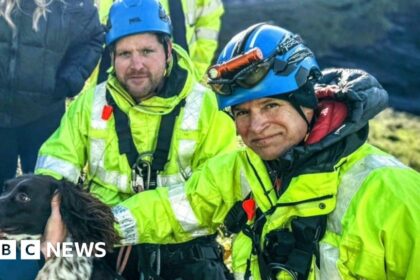 A missing dog that was spotted part way down a cliff has been rescued by a coastguard team. Boscastle Coastguard said they were paged at 10:45 GMT on Monday to reports of the dog stuck at Trebarwith, ...