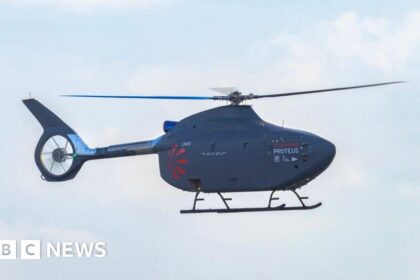 Caroline RobinsonSouth West Simon Pryor The Royal Navy said the helicopter was designed and built by Leonardo under a £60m programme The UK’s first autonomous full-size helicopter Proteus has co...
