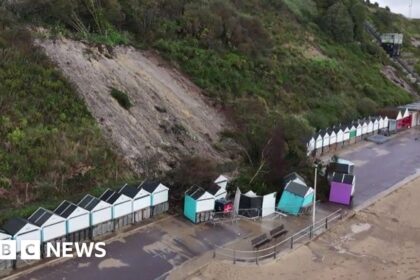 Indy Almroth-WrightSouth of England BBC Beach huts were pushed across the promenade during a cliff fall in October 2024 A council has earmarked £1.4m to strengthen cliffs along a stretch of coastline ...