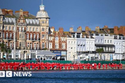 A seafront has been decorated with hundreds of handmade festive stocking to highlight the need for foster carers. The 471 stockings have been hung up along Weymouth Esplanade – each one represen...