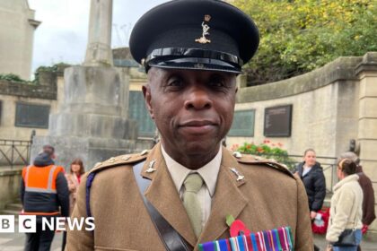 Chloe Harcombe,West of England and Ross Pollard,in Bath BBC Capt John Ledgister is the parade commander and director in Bath, Somerset Thousands of people across the west of England gathered to pay th...