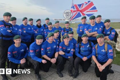 Twenty-eight Royal Marine veterans have marched 925 miles (1,490km) from John O’Groats to Lands End in Cornwall for charity. They set off on the eight-day long speed march on 31 October and arri...