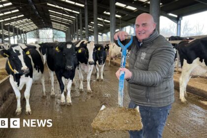 Dave HarveyBusiness and environment correspondent, West of England BBC Dairy farmer Richard Clothier sees cow manure as “nature’s crude oil” How many homes could be heated by cow muc...