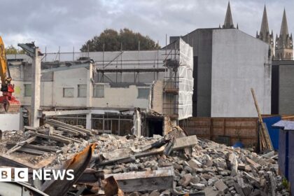 David Dixon,Cornwall and Lee Trewhela,Local Democracy Reporting Service BBC Bulldozers working to demolish the final part of the site The final phase of demolition work has started on a £170m developm...