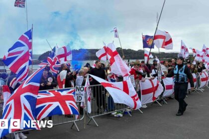 About 200 people have taken part in rival protests in Plymouth. People congregated on Plymouth Hoe on Sunday afternoon and were separated by about 85 police officers, with several drafted in from Wale...