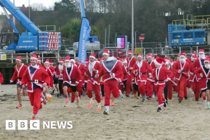More than 200 runners dressed as Santa have taken part in a seaside town’s festive Chase the Pudding charity race. The sprint along Weymouth beach, saw a pudding pursued by the Santas along a th...