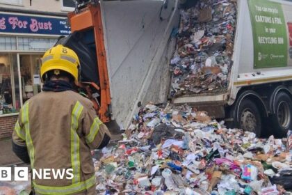 A fire that broke out in a bin lorry was “quite likely” caused by a crushed battery, a council has said. A crew from Dorset Council noticed smoke coming from the rear of their vehicle in W...