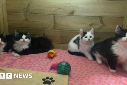 Four kittens were saved after they were found malnourished and riddled with fleas and worms at a landfill site. Workers from a cat welfare charity used kippers to tempt the kittens to safety after sta...