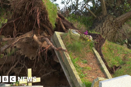 Jonathan MorrisSouth West BBC Several graves were disturbed after trees were uprooted at Paul cemetery near Mousehole Several graves were disturbed after trees were uprooted at a cemetery when Storm G...