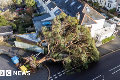 Jonathan MorrisSouth West PA Media A Falmouth house was left damaged by a fallen tree Thousands of homes in Cornwall are still struggling without electricity and water four days after Storm Goretti to...