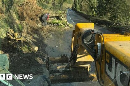 Farmers worked together to remove two trees which were toppled by Storm Goretti and left lying on a blind bend of a main road in Helston. Dairy farmer Martin Wallis, who runs Penventon Farm just outsi...