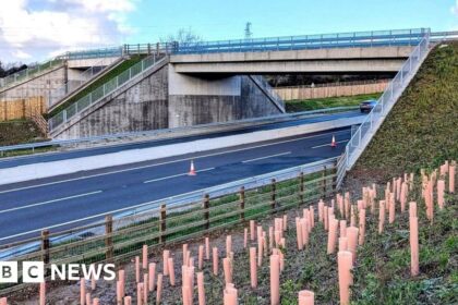 A new “green bridge” spanning the A30 has been planted with saplings, grasses and wildflowers following dualling work. As part of the A30 Chiverton to Carland Cross upgrade the 165ft (50m)...