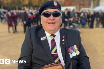 Pippa RifkaBBC News, Somerset Blind Veterans UK John Hardy served in the Gulf War with the Royal Army Medical Corps A blind veteran says he was “filled with pride” to lead a contingent for...