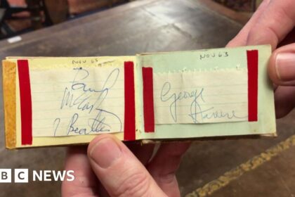 Autographs of members of The Beatles and a hat from the 1994 film Four Weddings and A Funeral are among the music and film memorabilia due to go under the hammer in Exeter next week. The hat worn by A...