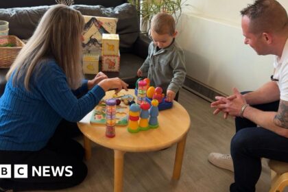 Tristan PascoeDorset political reporter, Bournemouth BBC/Tristan Pascoe Chris Bott from Bournemouth, with his son Albie and support worker Teri Hill Fathers are being encouraged to play an active role...