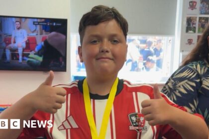 Family photo Oliver said he was looking forward to the match between Exeter City and Manchester City A 12-year-old football fan who is slowly losing his sight is setting off to watch his team play in ...