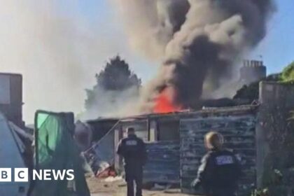 Getty Images Dozens of firefighters attended the blaze amid fears it would spread to the stadium’s stands An investigation is being launched after a fire broke out at Exeter City’s stadium...