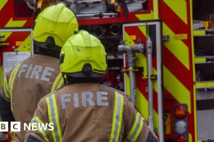 Three garages have been damaged in a large blaze, firefighters have said. Devon and Somerset Fire and Rescue Service said one garage was “well alight” when crews arrived at about 11:10 GMT...