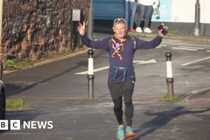 BBC Steve James finished his 200th marathon in 200 days in Topsham, where he began the challenge in April A 66-year-old man has completed 200 marathons in 200 days around the British coastline. Retire...