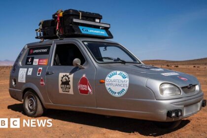 Seth Scott The Reliant Robin has endured “bumps and bruises” on the 10,000-mile journey Two men who are driving to Cape Town in a three-wheeled vehicle have reached Africa. Oliver Jenks, f...