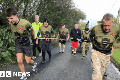 BBC The Military vs Cancer team has reached the South West as part of its challenge to pull a field gun across Britain A team who have pulled a one tonne field gun across Britain for a charity challen...