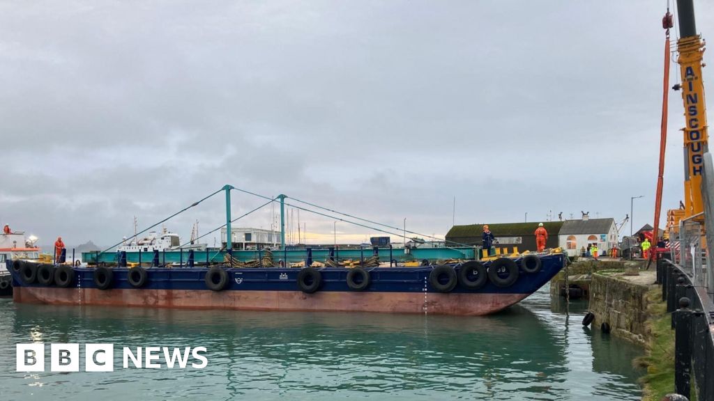 Home / BBC Cornwall / Bridge craned on to barge prior to restoration