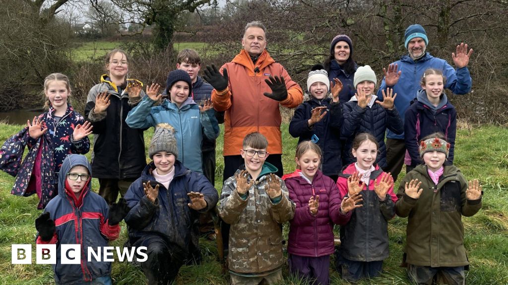 The children in Devon spend a day planting willow, alder, and aspen trees along a river bank.
