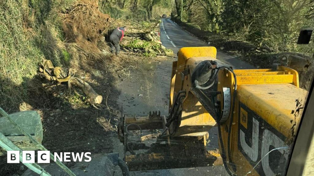 Farmers worked together to remove two trees which were toppled by Storm Goretti and left lying on a blind bend of a main road in Helston.