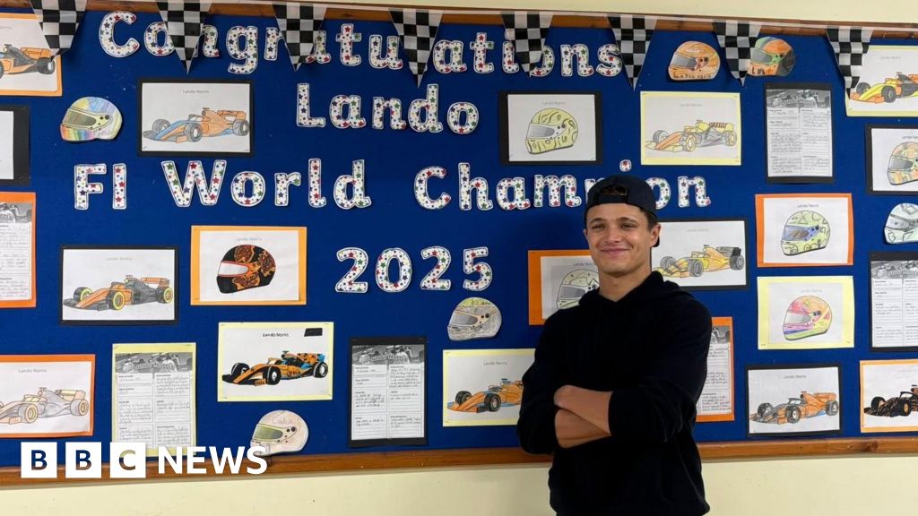 Lando Norris returned to his former school to speak to pupils, read stories and answer questions.