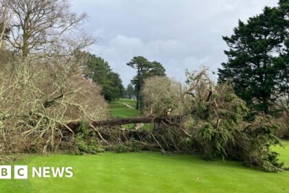 Alex Green,South Westand Janine Jansen,in Truro BBC Some trees fell across fairways at Truro Golf Club A golf club in Cornwall remains closed after Storm Goretti brought down dozens of trees on its gr...