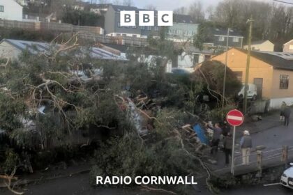 Archie Farmerand Zhara Simpson,South West A tree collapsed on to a property in Falmouth More than 80 trees were destroyed at St Michael’s Mount More than 25,000 people are still without power in...