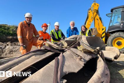 BBC The skull, which was buried in Falmouth, is the length of a minibus The two-tonne head of a whale that died after stranding in Cornwall has been excavated in a 10-hour mission, five years after it...