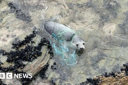 Marine medics have saved the life of a young seal after it became entangled in discarded fishing net which snagged on a mussel bed in shallow water. The grey seal was caught in a mass of net which bec...