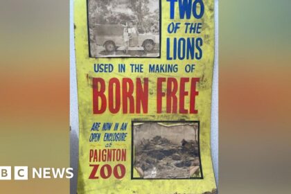 Poster about two lions used in Born Free moving to Paignton Zoo found in roof. Source link...