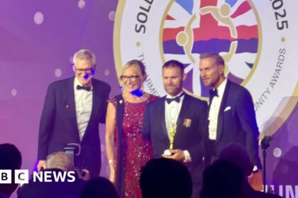 A former Royal Marine commando has won an award as part of a national platform which celebrates the achievements of the armed forces community. Plymouth-based triple amputee Mark Ormrod MBE won the &#...