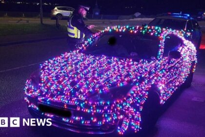 Police have warned drivers not to let festive sparkle blind them to road safety after pulling over a car decked out with Christmas lights. Officers from Poole in Dorset spotted the vehicle while out o...