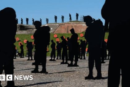 An art installation of 258 silhouetted figures representing those who died in the Falklands War is set to open at a historic sea fort. Standing with Giants: Falklands Tribute was created using recycle...