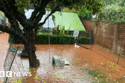 Catherine Greer Catherine Greer’s back garden in 2023, which was knee-deep in dirty water, ruining stock, vegetables and displacing hens. People whose properties have been flooded in west Somers...