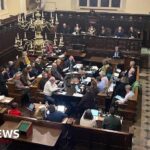 Crush is moved to a larger tank where she will be introduced to another rescued loggerhead turtle.