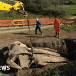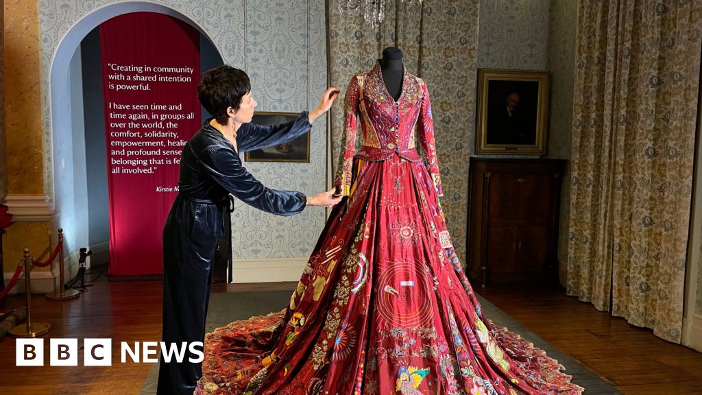BBCA red silk dress embroidered by 380 people in 51 countries over the course of 14 years has gone on display at Killerton House near Exeter.