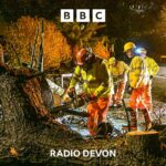A Met Office warning for snow is in place until 12:00 GMT for the south-west of England, with strong winds and heavy rain causing issues.