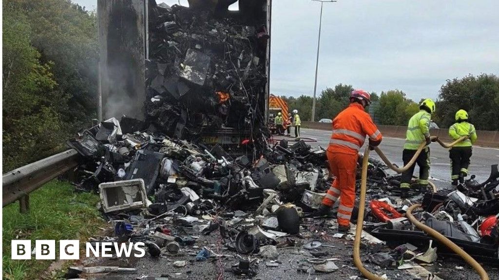 National Highways said the lorry was carrying 20 tonnes (2000kg) of household waste and electrical items including batteries and domestic appliances with nine miles (14.48km) of queues reported in the area at one stage.