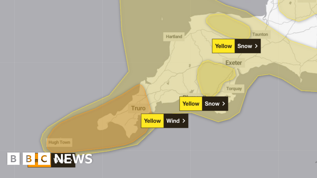 There is a further yellow warning for wind for Devon and Cornwall from 15:00 to 06:00 on Friday, while yellow weather warnings for snow, ice and rain are also in force for Devon and Somerset from 20:00 Thursday to 09:00 Friday.