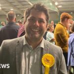 PA Media The picture shows a person swimming in open water wearing a swim cap and goggles, alongside a swan that is floating nearby. The water appears calm, and the background includes blurred structures, possibly a bridge or embankment. PA Media