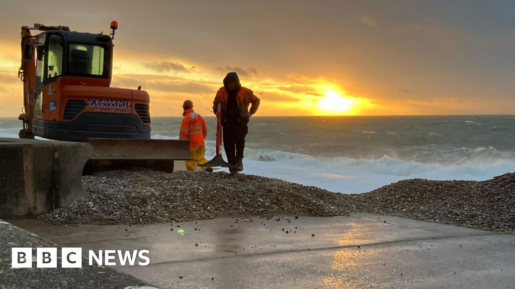 Home / BBC Devon / Work ongoing to return shingle to Devon beach after Storm Goretti