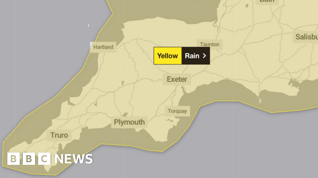 It said rainfall totals were expected to reach around 20mm (2cm) to 30mm (3cm), with 50mm (5cm) to 80 mm (8cm) likely across higher ground, especially Dartmoor.